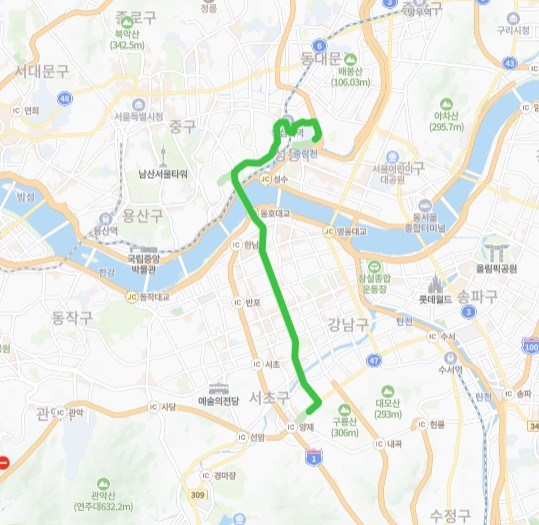 동호대교 정류장 – 한강을 횡단하며 강남·강북을 빠르게 연결하는 주요 교량으로, 교통 흐름에 따라 경치도 좋고 속도도 빠른 구간입니다.